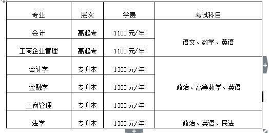 3、學費標準: 高起專(文史:1100元/年理工:1500元/年);專升本:(文史:1300元/年理工:1700元/年);高起本(文史:1300元/年,理工:1700元/年)具體收費標準以省教育廳收費標準為準。
