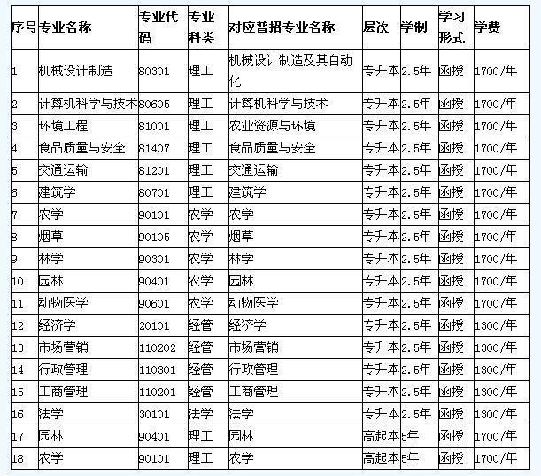 河南農(nóng)業(yè)大學(xué)成人教育招生專業(yè)