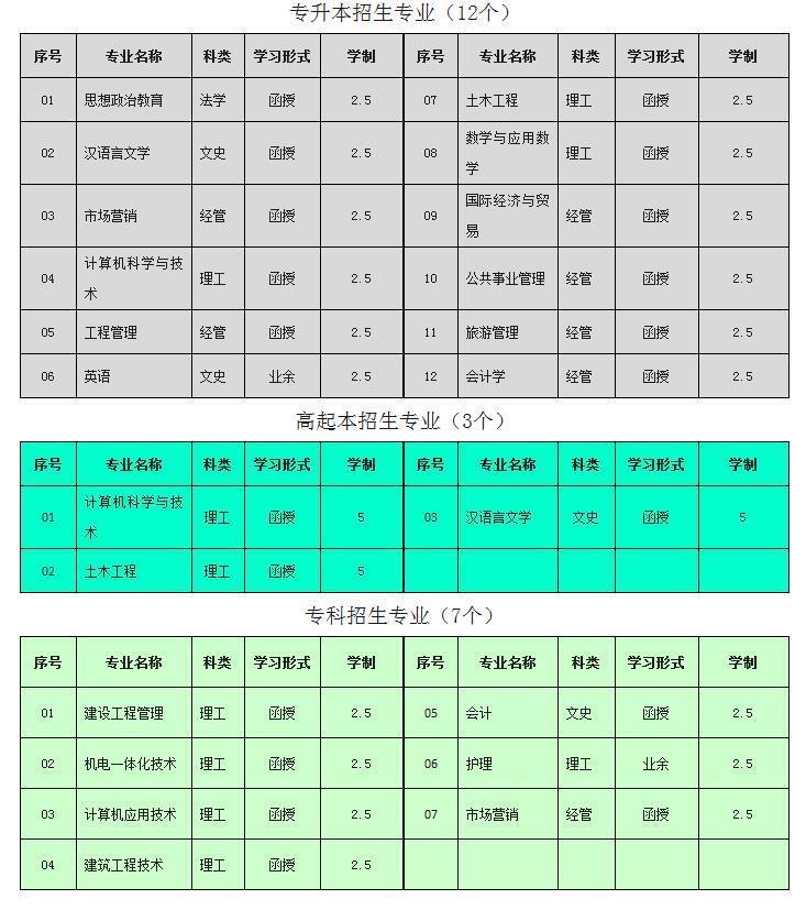 黃淮學院成人教育報名招生專業(yè)一覽表