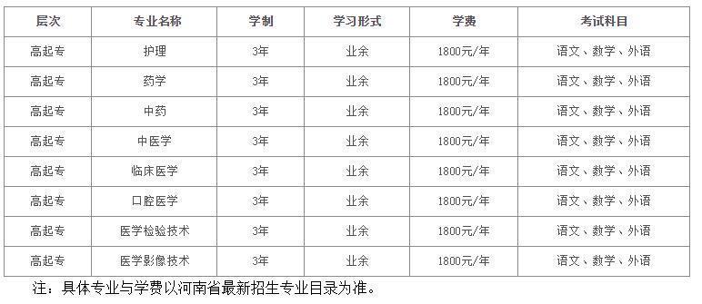 南陽(yáng)醫(yī)學(xué)高等專(zhuān)科學(xué)校成人教育招生專(zhuān)業(yè)一覽表