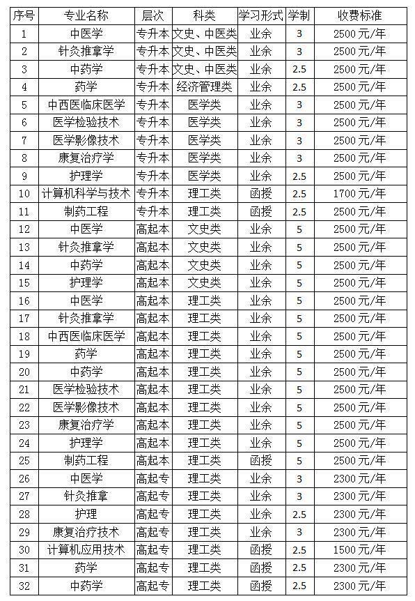 河南中醫(yī)藥大學成人教育招生專業(yè)