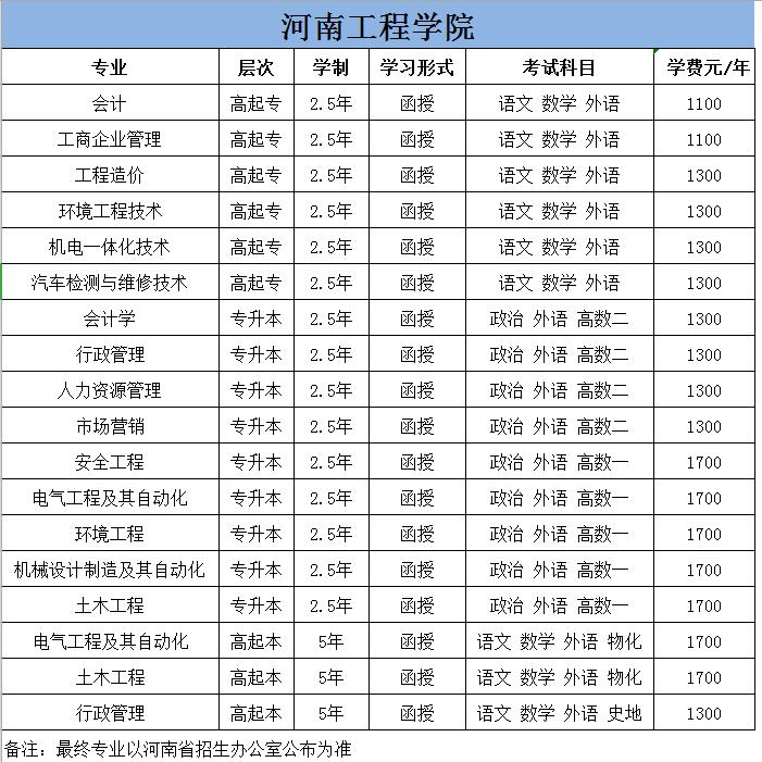 原標(biāo)題:河南工程學(xué)院2020年招生簡(jiǎn)章成人高考大專本科考試科目(必看)