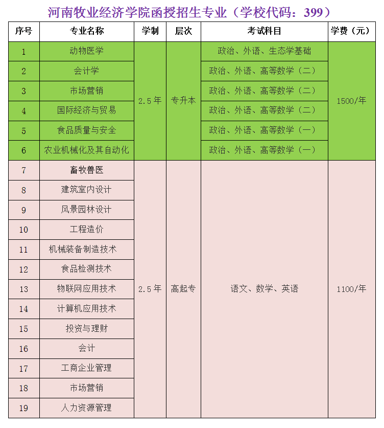 河南牧業(yè)經(jīng)濟學院函授教育招生專業(yè)