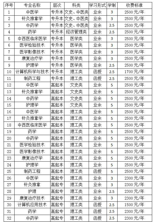 河南中醫(yī)藥大學(xué)成人教育招生專業(yè)計劃表