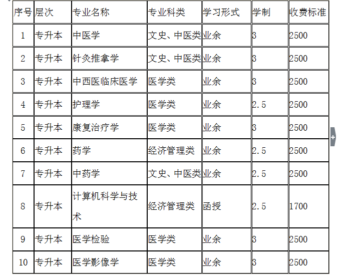 河南中醫(yī)學院成人教育專升本招生專業(yè)