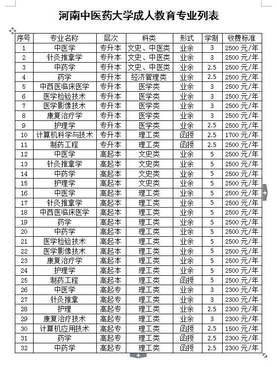河南中醫(yī)藥大學(xué)成教招生專業(yè)