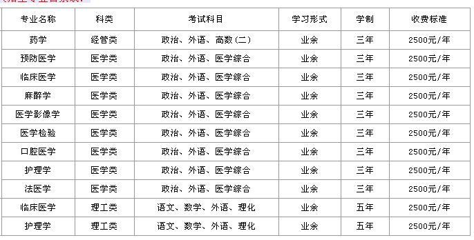 新鄉(xiāng)醫(yī)學(xué)院成人高考招生專業(yè)目錄表