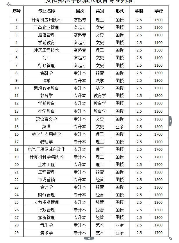安陽(yáng)師范學(xué)院成人函授??崎_(kāi)設(shè)專業(yè)