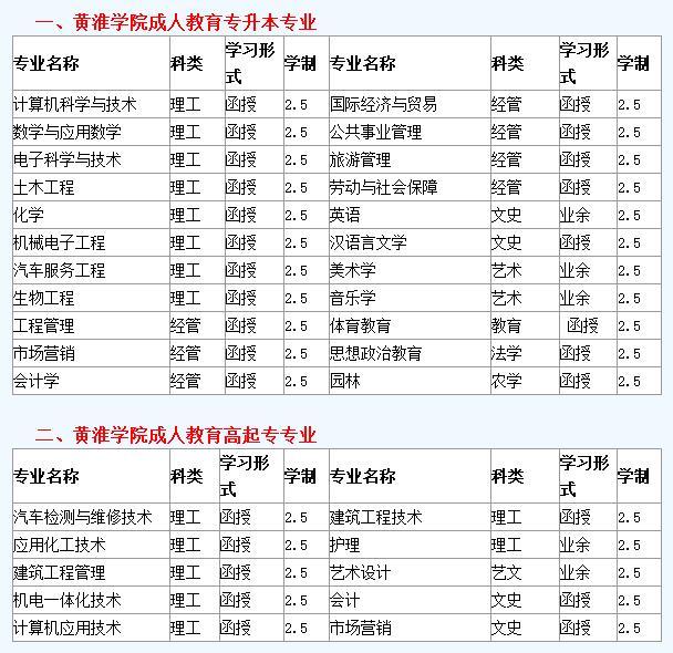 黃淮學(xué)院高升本成人成人高考招生專業(yè)