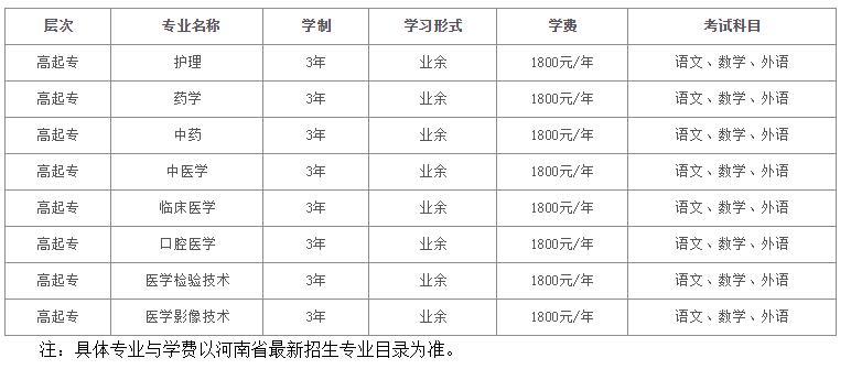 2020年南陽醫(yī)學(xué)高等??茖W(xué)校成人教育招生專業(yè)一覽表