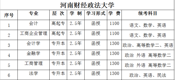 河南財(cái)經(jīng)政法大學(xué)成考招生專業(yè)