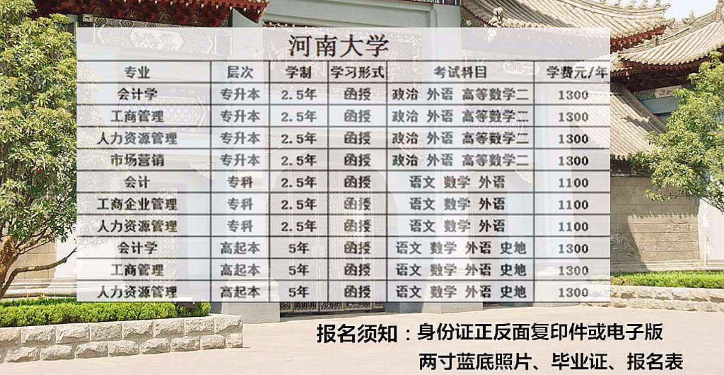 河南大學(xué)成人高考專升本招生專業(yè)學(xué)費(fèi)匯總
