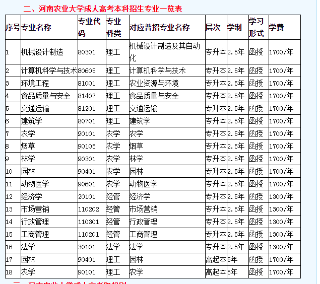 河南農(nóng)業(yè)大學(xué)函授專升本招生學(xué)費