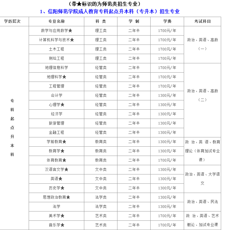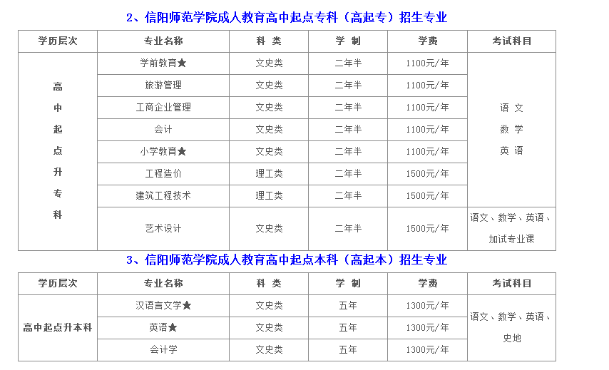 信陽師范學(xué)院成人教育招生專業(yè)及學(xué)費(fèi)匯總