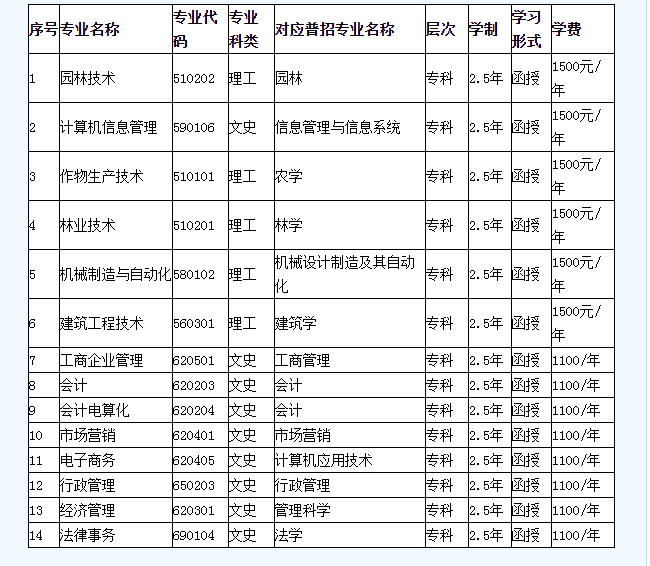 高起專專業(yè)理工類 1500元/生·年;